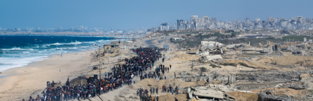 Ένα ανθρώπινο «ποτάμι», δεκάδες χιλιάδες Παλαιστίνιοι παίρνουν το δρόμο της επιστροφής, προς την πόλη της Γάζας. Οικογένειες αντικρίζουν τα ερείπια των σπιτιών τους, αναζητώντας, μάταια, απαντήσεις.