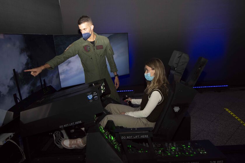 Στην έκθεση λειτουργεί επίσης προσομοίωση πτήσης αεροσκαφών Rafale, F-4E, M2000-5 Πηγή: Πολεμική Αεροπορία
