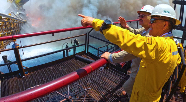 Στην πλατφόρμα εργάζονταν περισσότεροι από 300 άνθρωποι. Οι αρχές εξετάζουν ακόμα τα αίτια της φωτιάς και οι υπεύθυνοι της πετρελαϊκής εταιρίας λένε πως η παραγωγή πετρελαίου επηρεάστηκε αρκετά από την πυρκαγιά.