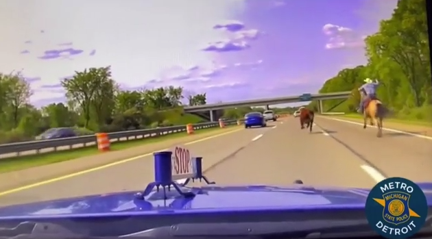 Όλα είναι ήσυχα στην αστυνομική περιπολία στον αυτοκινητόδρομο 75 του Μίσιγκαν όταν ξαφνικά η κάμερα καταγράφει μία αγελάδα που την κυνηγάει ένας καουμπόι.