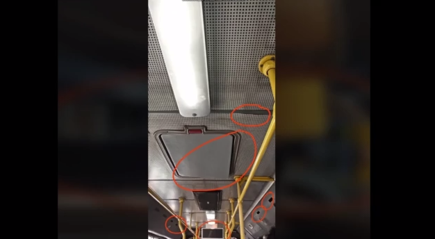 Καπάκι που καλύπτει τα ηλεκτρονικά του λεωφορείου ξεκολλήθηκε και παραλίγο να έπεφτε στα κεφάλια των επιβατών. Στο Α3 που εκτελεί τη γραμμή Γλυφάδα – Αθήνα υπήρχε παρατημένη μέχρι και ξύλινη παλέτα ενώ τουλάχιστον αντιαισθητικές μπορεί να χαρακτηρίσει κανείς τις κορδέλες που διαχωρίζουν τη θέση του οδηγού από τους επιβάτες πατέντα που είχε εφαρμοστεί την περίοδο της καραντίνας αλλά –όπως βλέπουμε παραμένει στα περισσότερα λεωφορεία.