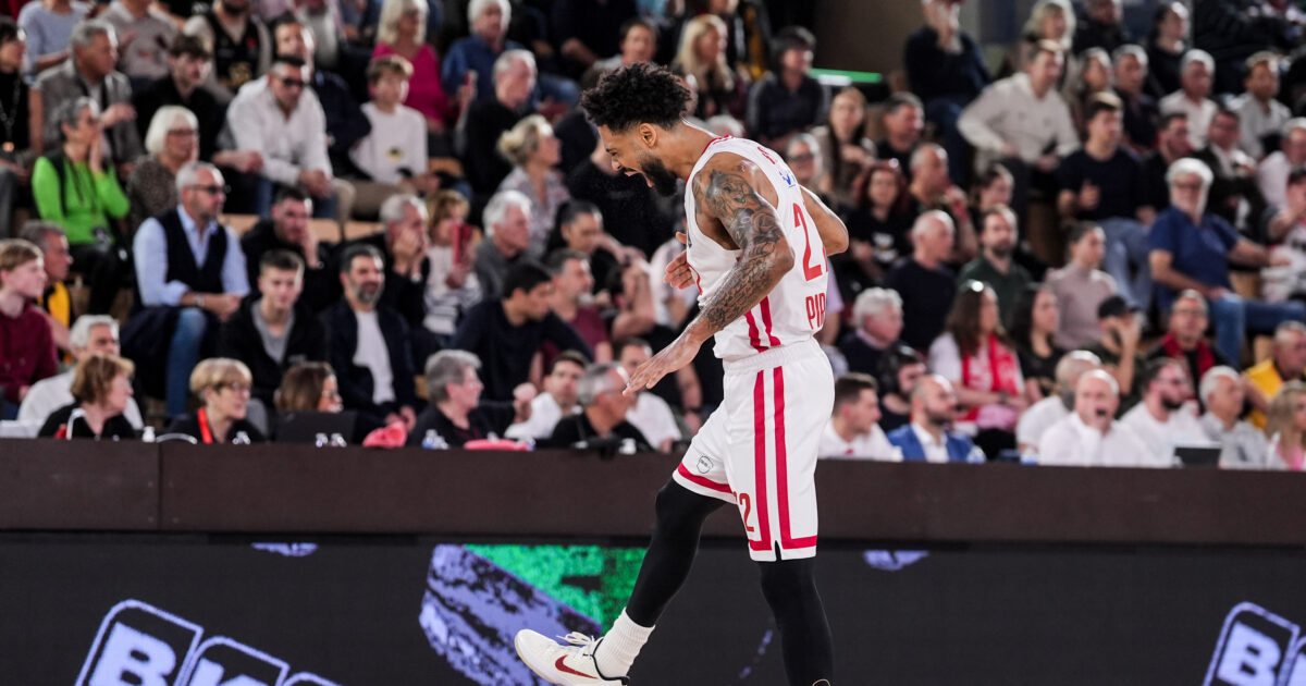Ο Ντόρσεϊ πανηγυρίζει ένα τρίποντό του στο Μονακό – Ολυμπιακός (EUROKINISSI)