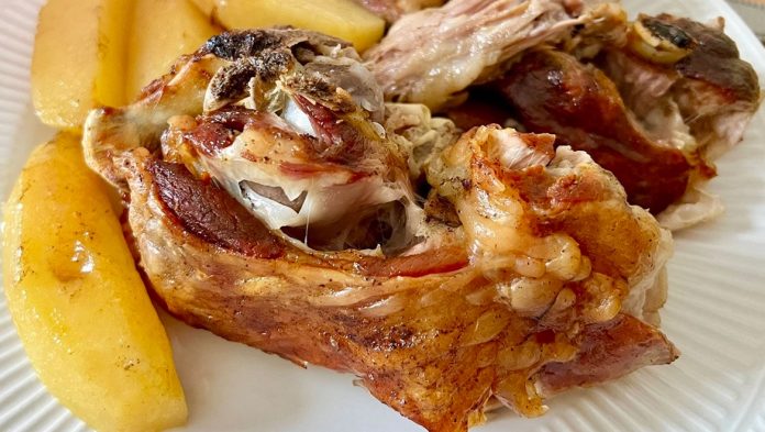 Ψήνετε το φαγητό στο φούρνο για 30 λεπτά και κατόπιν χαμηλώνετε τη θερμοκρασία στους 150οC και ψήνετε για 4-5 ώρες επιπλέον. Μετά από τις πρώτες 2-3 ώρες αναποδογυρίζετε το αρνάκι για να ροδοκοκκινίσει και από την άλλη πλευρά.