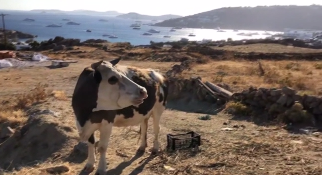 Διασχίζουν τον δρόμο που οδηγεί σε παραλία της Μυκόνου χωρίς καμία επίβλεψη από τον ιδιοκτήτη και αργότερα τις βλέπουμε να κάθονται δίπλα στο κύμα.