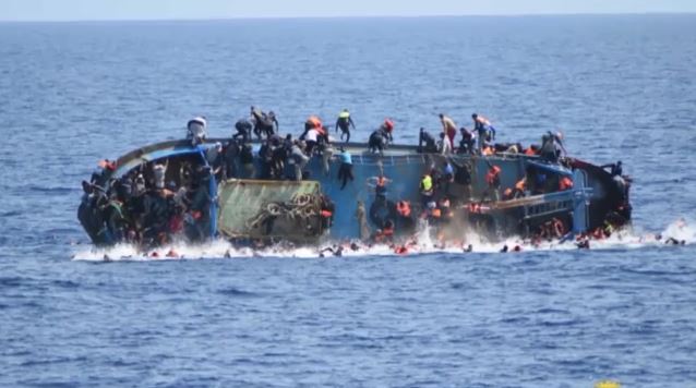 Όπως φαίνεται σε βίντεο, φαίνεται την ώρα που γυρνάει και οι μετανάστες κατά δεκάδες πέφτουν στο νερό.
