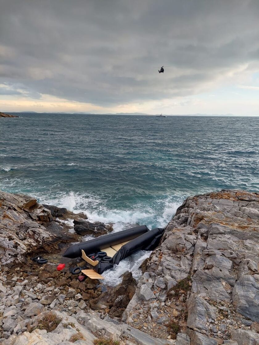 Ειδικότερα, μετά από εντοπισμό λέμβου σε βραχώδες σημείο στην ως άνω περιοχή, ξεκίνησαν άμεσα έρευνες από Πλοίο Ανοικτής Θαλάσσης (Π.Α.Θ.) Λ.Σ.-ΕΛ.ΑΚΤ., δύο περιπολικά σκάφη Λ.Σ.-ΕΛ.ΑΚΤ., ένα ελικόπτερο SUPER PUMA της Π.Α. από αέρος, ενώ από ξηράς επιχειρούν στελέχη Λ.Σ.-ΕΛ.ΑΚΤ. και κλιμάκια ΕΛ.ΑΣ και Π.Υ.