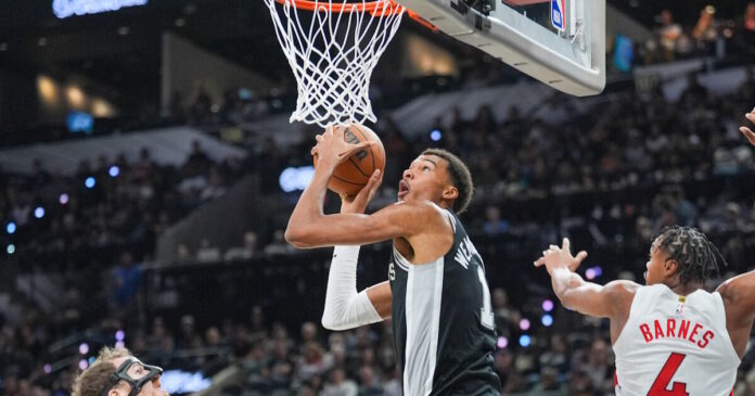 Οι Σαν Αντόνιο Σπερς του Βίκτορ Γουεμπανιάμα συνεχίζουν ακάθεκτοι στο NBA. Ο Γάλλος “αστέρας” έκανε ένα εντυπωσιακό double-double με 24 πόντους και 15 ριμπάουντ (4 ασίστ, 1 κλέψιμο και 1 τάπα) και οδήγησε την ομάδα του στη νίκη επί των Τορόντο Ράπτορς με 121-103 και στο 4/4 στο NBA.