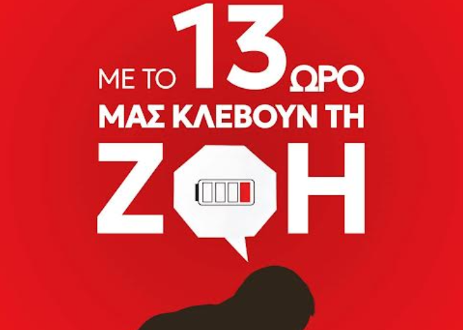 Η θέσπιση του 13ωρου δεν είναι επιλογή των εργαζομένων. Αποτελεί νέα επίθεση στα εργασιακά δικαιώματα με εξοντωτικές συνέπειες για κάθε λαϊκό νοικοκυριό και όχι μόνο.
