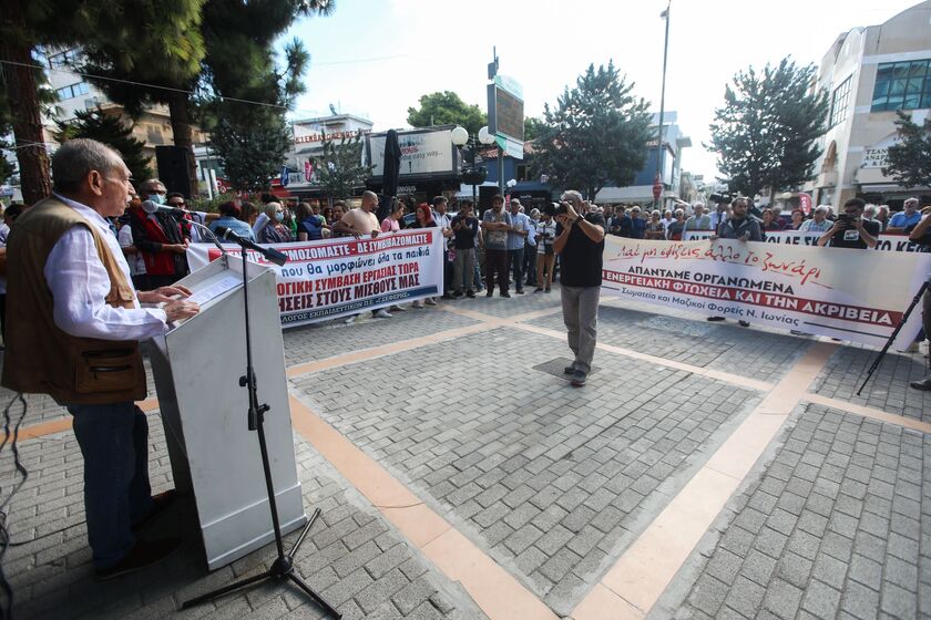 Κινητοποίηση σωματείων και μαζικών φορέων της Νέας Ιωνίας πραγματοποιήθηκε το πρωί του Σαββάτου, 8 Οκτωβρίου, στην πλατεία Σημηριώτη, με κεντρικό σύνθημα «Λαέ μη σφίξεις άλλο το ζωνάρι – Απαντάμε οργανωμένα στην ενεργειακή φτώχεια και την ακρίβεια».