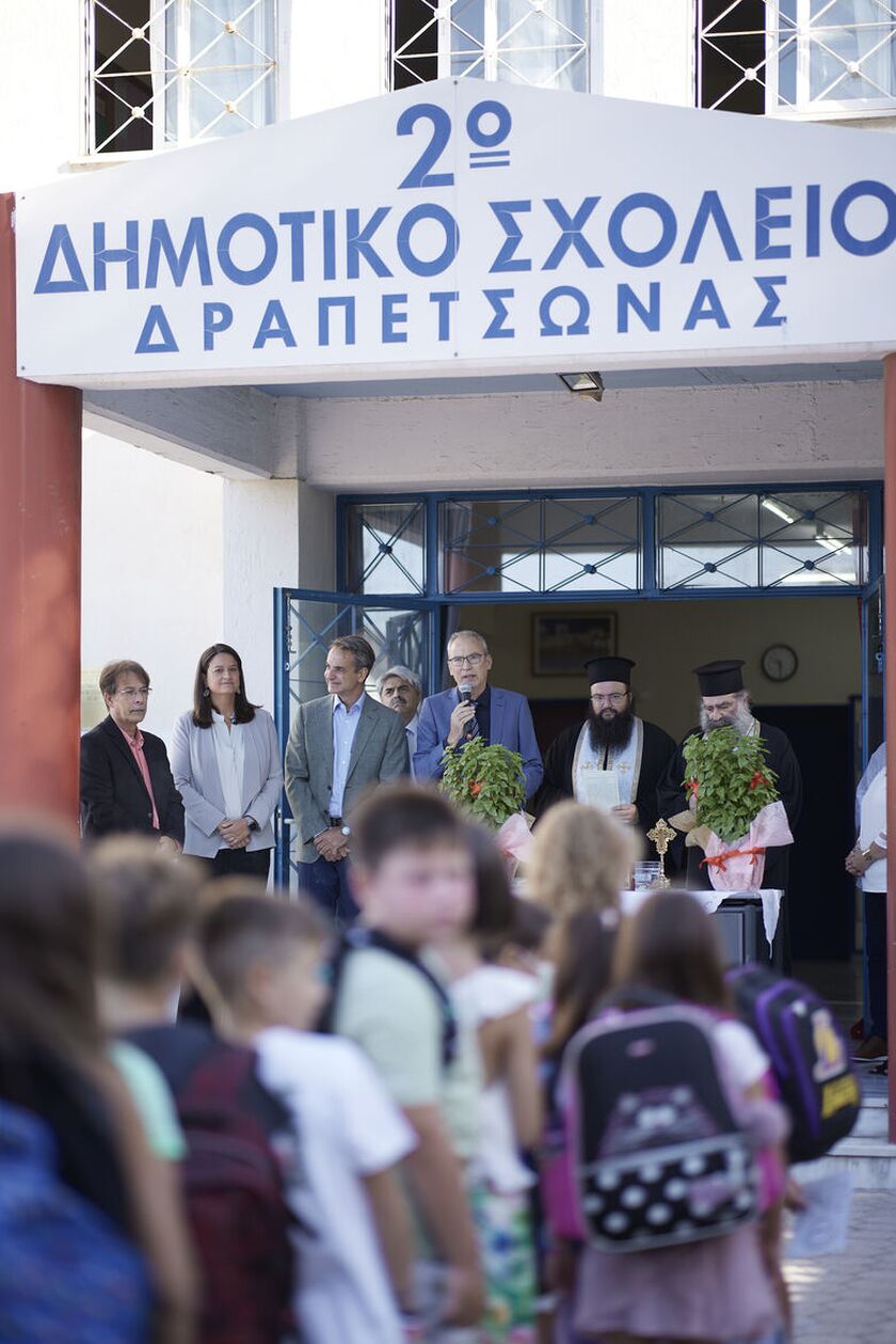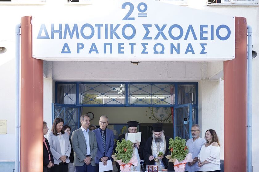 Στο 2ο Δημοτικό Σχολείο Δραπετσώνας βρέθηκε το πρωί ο πρωθυπουργός Κυριάκος Μητσοτάκης, ο οποίος παρευρέθη στον αγιασμό.