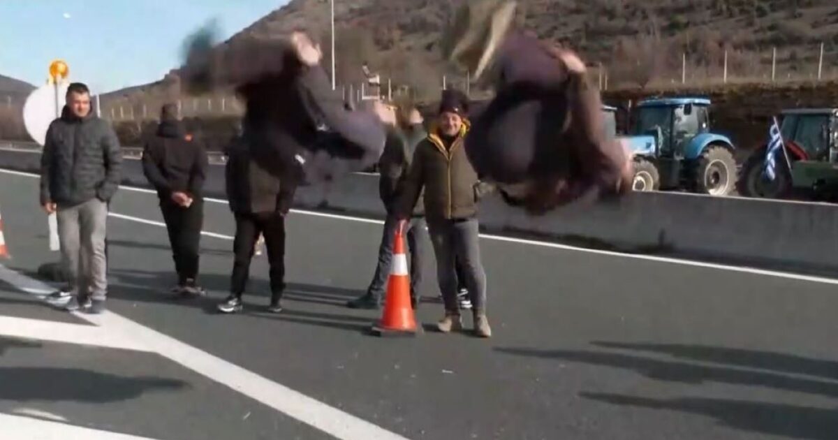 Ακροβατικά έκαναν νεαροί αγρότες στο μπλόκο της Σιάτιστας