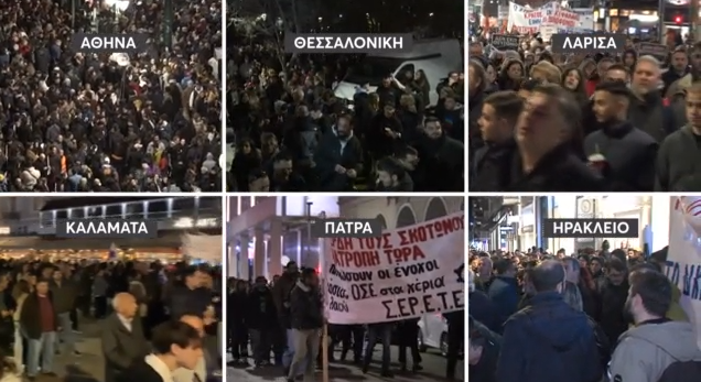 Μαζικές συγκεντρώσεις και πορείες και σε άλλες περιοχές της χώρας. Από τα Τρίκαλα έως τα Χανιά και από το Κιλκίς μέχρι τη Μυτιλήνη, άνθρωποι όλων των ηλικιών ένωσαν τις φωνές με εκείνες των συγγενών των θυμάτων.