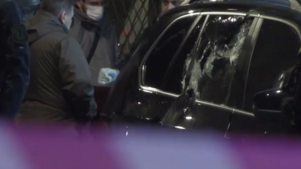 Η θωράκιση στα τζάμια δεν άντεξε τον καταιγισμό των πυρών ενώ μια από τις βολίδες κατέληξε σε μπαλκόνι πολυκατοικίας.