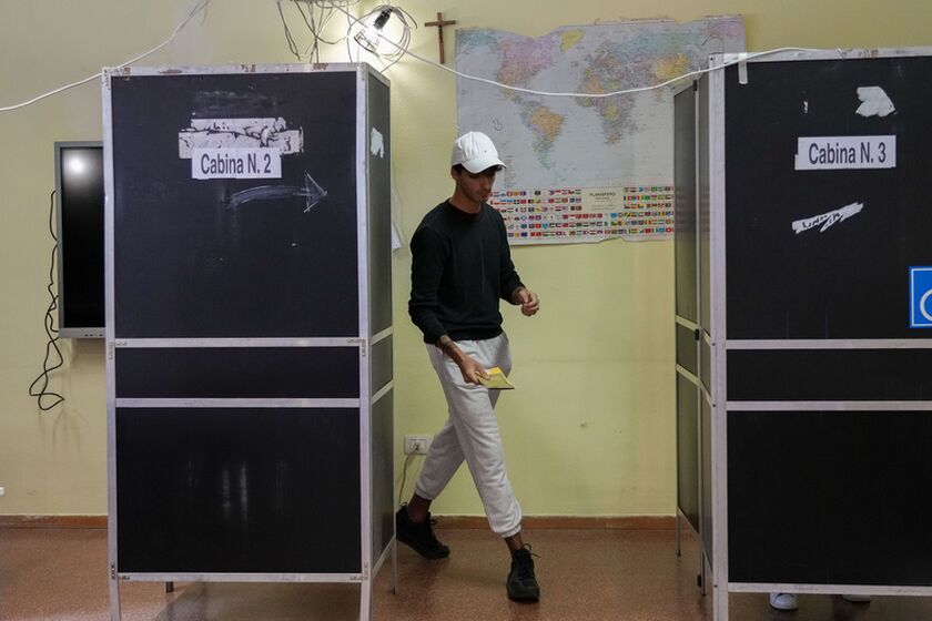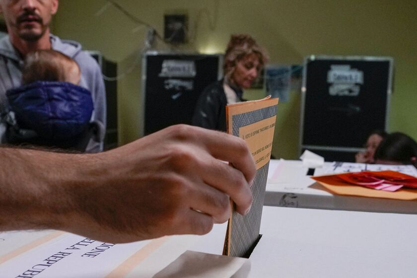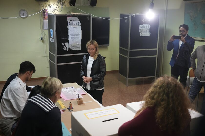 H Τζόρτζια Μελόνι κατά την άσκηση του εκλογικού της δικαιώματος Πηγή: AP Photo