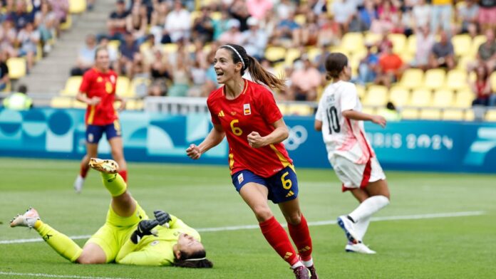 Η “Φούρια Ρόχα” αιφνιδιάστηκε από την αντεπίθεση της Ιαπωνίας από τα πρώτα λεπτά της αναμέτρησης, καθώς οι Γιαπωνέζες βρήκαν δίχτυα μόλις στο 13ο λεπτό με την Φουγίνο, μετά από ωραία εκτέλεση φάουλ έξω από την περιοχή. Η Ισπανία ανέβασε ρυθμό και περιόρισε την τυπικά φιλοξενούμενη, για να έρθει η ισοφάριση μερικά λεπτά μετά και πιο συγκεκριμένα στο 22′, με την Μπονμάτι να χρίζεται σκόρερ. Η συνέχεια είχε ένταση, με τα δυο σύνολα να έχουν αρκετές μονομαχίες στον χώρο του κέντρου, το οποίο είχε ως αποτέλεσμα να παραμείνει το 1-1 μέχρι το τέλος του πρώτου μέρους.