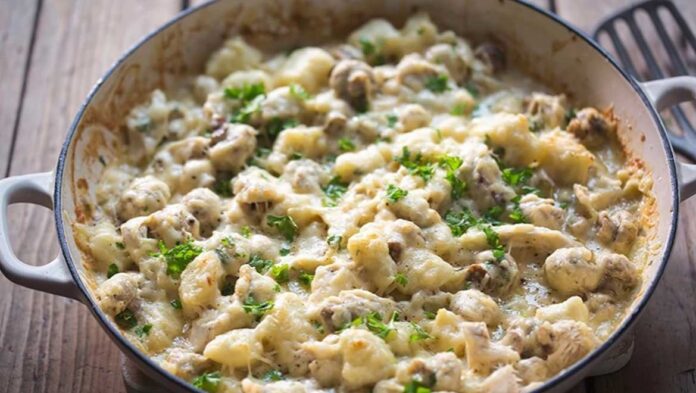 Νιόκι με κρεμώδη σάλτσα και κοτόπουλο