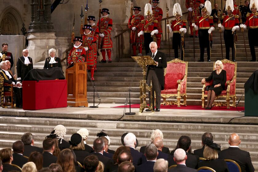 Ο βασιλιάς Κάρολος Γ‘ πραγματοποίησε την πρώτη του εμφάνιση ως μονάρχης στο Κοινοβούλιο, όπου τα μέλη της Βουλής των Κοινοτήτων και της Βουλής των Λόρδων του εξέφρασαν τα συλλυπητήριά τους για τον θάνατο της βασίλισσας Ελισάβετ.