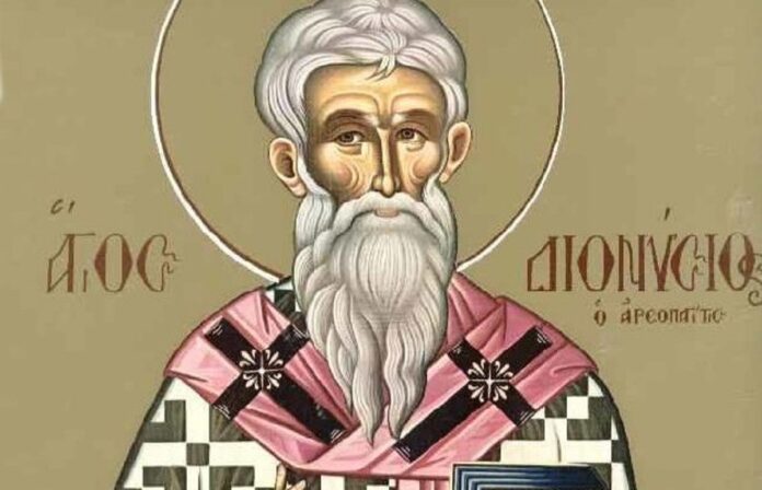 Ο Άγιος Διονύσιος αρχικά ήταν ειδωλολάτρης και μέλος της Βουλής του Αρείου Πάγου. Το κήρυγμα όμως του Αποστόλου Παύλου άγγιξε την παιδευμένη και ευαίσθητη ψυχή του και βαπτίσθηκε. Αργότερα διαδέχθηκε στον επισκοπικό θρόνο των Αθηνών τον ευσεβή Ιερόθεο. Επιβραβεύθηκε από το θεό για τη χριστιανική του δράση με το χάρισμα να επιτελεί θαύματα.
