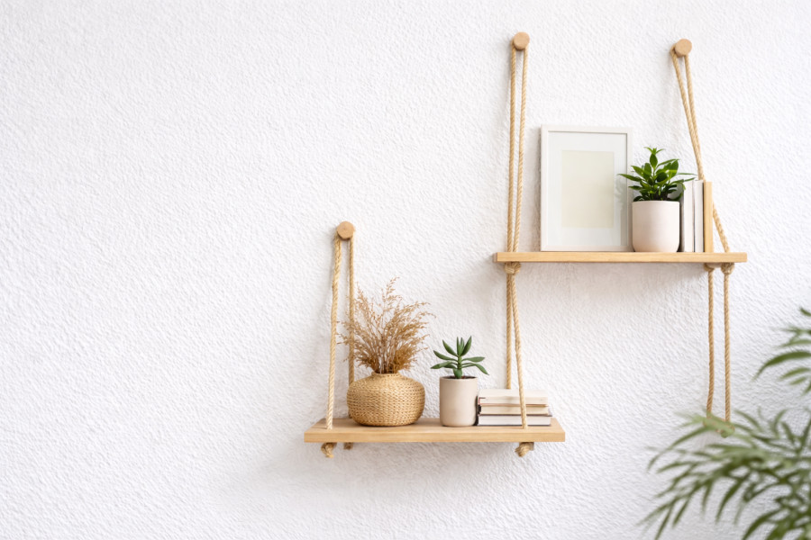 Αν σου αρέσει το minimal ύφος με φυσικά υλικά, τα ράφια από ξύλο και σχοινί είναι από τις πιο κομψές και οικονομικές λύσεις. Συνδυάζουν ζεστασιά, απλότητα και χαρακτήρα, χωρίς να «βαραίνουν» τον χώρο. Μπορούν να μπουν στο σαλόνι, στο υπνοδωμάτιο, ακόμα και στην κουζίνα.