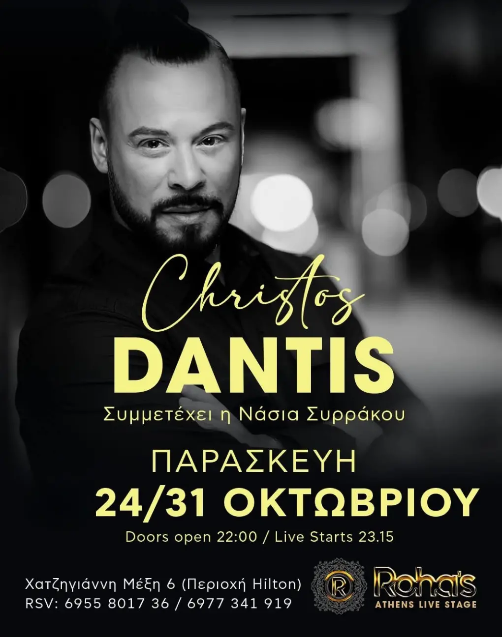 Ο μοναδικός Χρήστος Δάντης, μετά την εκρηκτική του εμφάνιση στο Rohas Live Stage, επιστρέφει δυναμικά για δύο ακόμα Παρασκευές, στις 24 και 31 Οκτωβρίου!