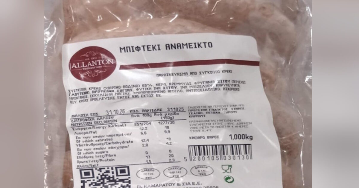 Όπως έδειξε ο έλεγχος του ΕΦΕΤ, το «μπιφτέκι κατεψυγμένο», με κωδικό παρτίδας: 31102025 και ημερομηνία ανάλωσης έως 31.10.2026, που παράγεται από την επιχείρηση ”Π. Καμαρατου & ΣΙΑ Ε.Ε.”, διαπιστώθηκε ότι έχει τον παθογόνο μικροοργανισμό Salmonella spp.