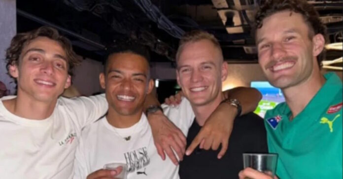 Στο στόρι που ανέβασε στο Instagram, ο Εμμανουήλ Καραλής ποζάρει χαμογελαστός με τους συναθλητές του, κρατώντας όλοι τα ποτά τους και δείχνοντας ότι ξέρουν να απολαμβάνουν τη στιγμή και εκτός σταδίου.