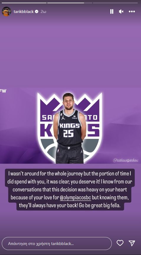 Ο Σάσα αποφάσισε να αποχωρήσει από τον Ολυμπιακό για την εμπειρία του NBA αφήνοντας ένα μεγάλο κενό στην ομάδα των Πειραιωτών, με όλα τα μέλη να σπεύδουν να του ευχηθούν για το νέο κεφάλαιο στην καριέρα του.