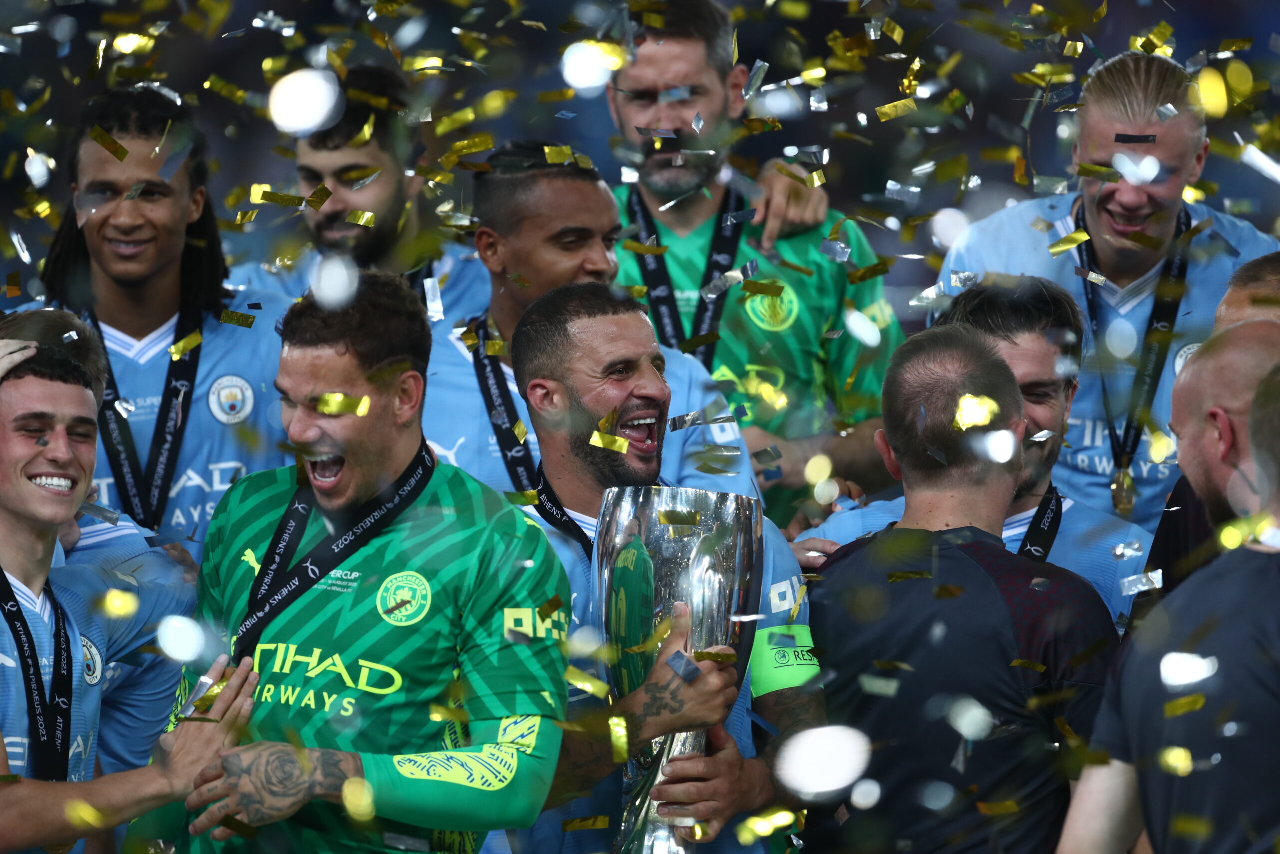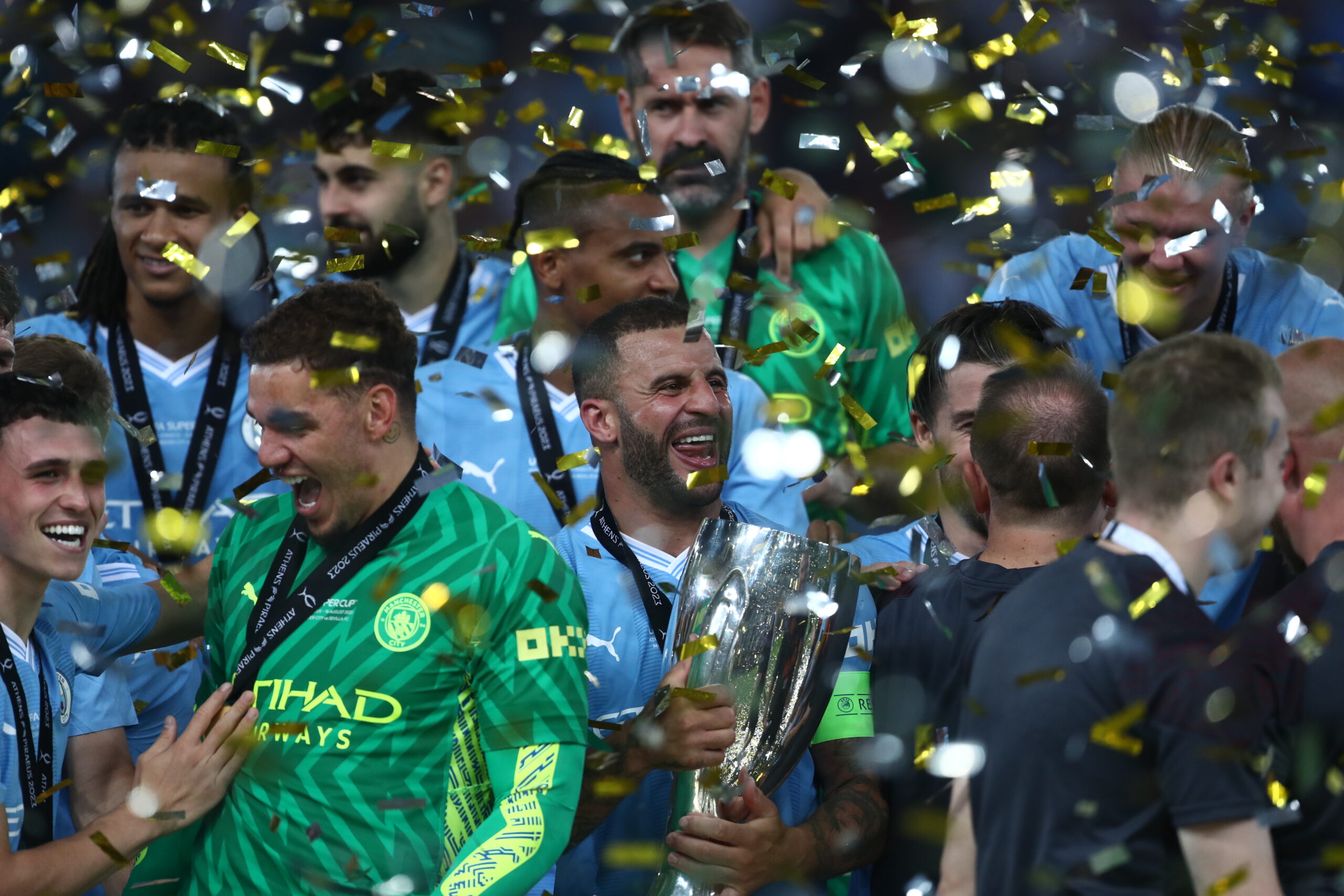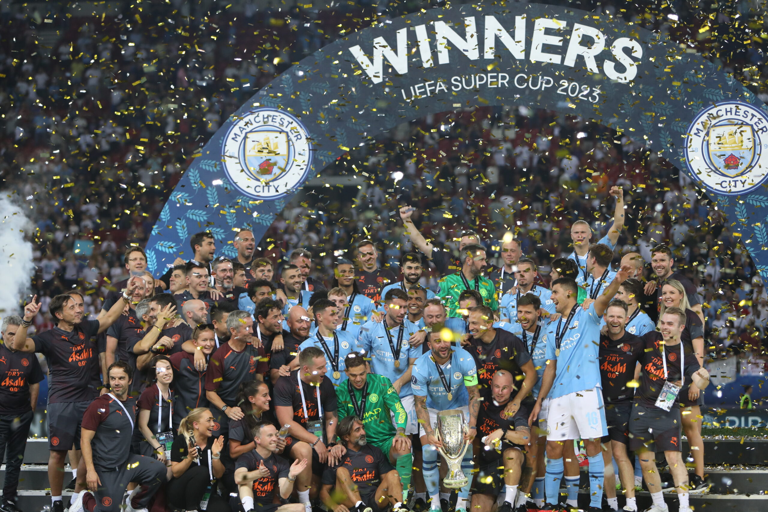 Η Σίτι κατέκτησε το πρώτο Super Cup στην ιστορία της, επικρατώντας 5:4 στα πέναλτι (1:1 κανονική διάρκεια) επί της Σεβίλλης, εν μέσω αποθέωσης, μέσα στο “Γ. Καραϊσκάκης”.