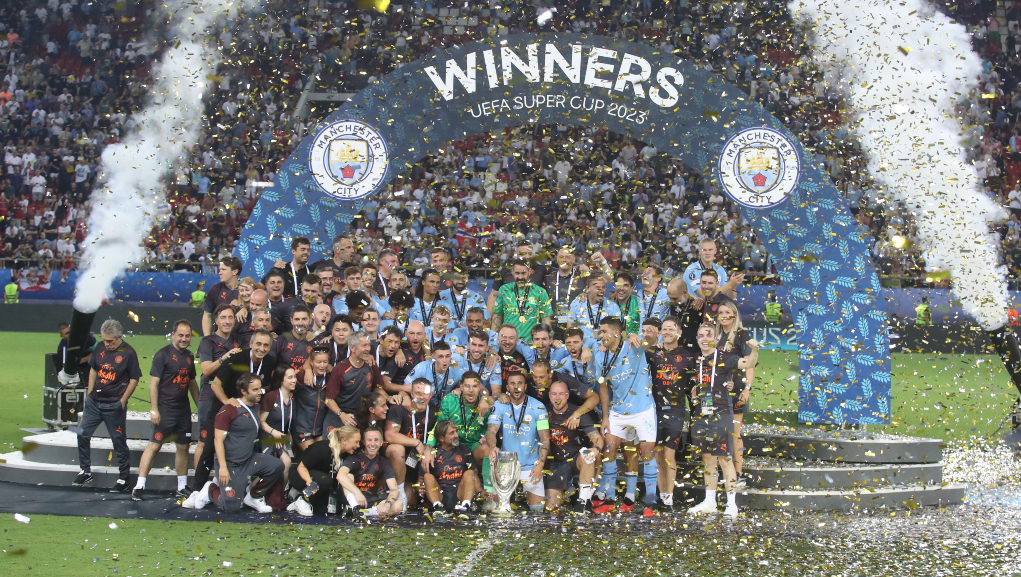 Η Σίτι κατέκτησε το πρώτο Super Cup στην ιστορία της, επικρατώντας 5:4 στα πέναλτι (1:1 κανονική διάρκεια) επί της Σεβίλλης, εν μέσω αποθέωσης, μέσα στο “Γ. Καραϊσκάκης”.