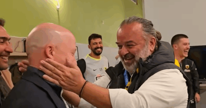 Ο Ηλιόπουλος φιλάει τον Νίκολιτς στα αποδυτήρια της ΑΕΚ