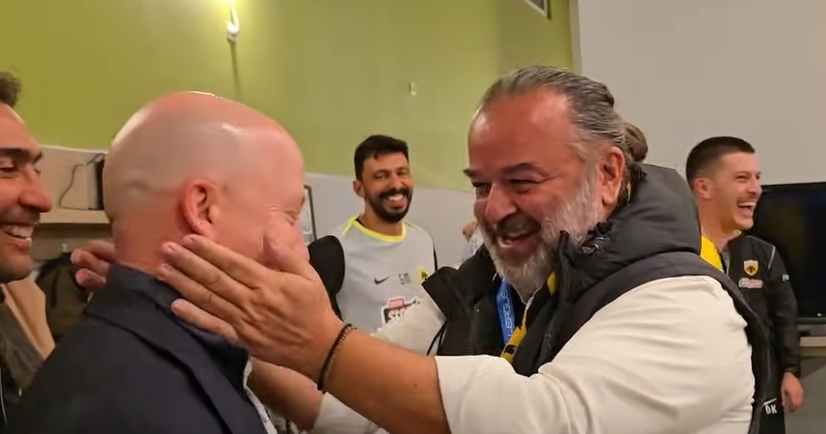 Η ΑΕΚ πήρε σημαντικό διπλό με 3-2 στη Λεωφόρο επί του Παναθηναϊκού σε ένα τρελό παιχνίδι και ο Μάριος Ηλιόπουλος πήγε στα αποδυτήρια μετά τη λήξη της αναμέτρησης για να συγχαρεί τους παίκτες της ομάδας του.