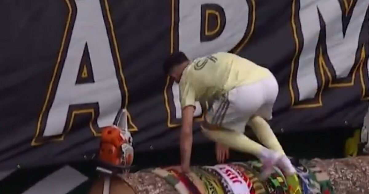 Η ομάδα του είναι γνωστή για τον κορμό δέντρου που κόβει η μασκότ πριν τη σέντρα των εντός έδρας αναμετρήσεών της και ο Νορβηγός εξτρέμ τον… καβάλησε για να ξεσηκώσει τους οπαδούς της.