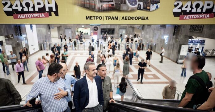 Με αφορμή την αυριανή έναρξη της 24ωρης λειτουργίας – κάθε Σάββατο- του μετρό, ο Κυριάκος Μητσοτάκης βρέθηκε σήμερα(12.09.2025) στο σταθμό του μετρό Συντάγματος.