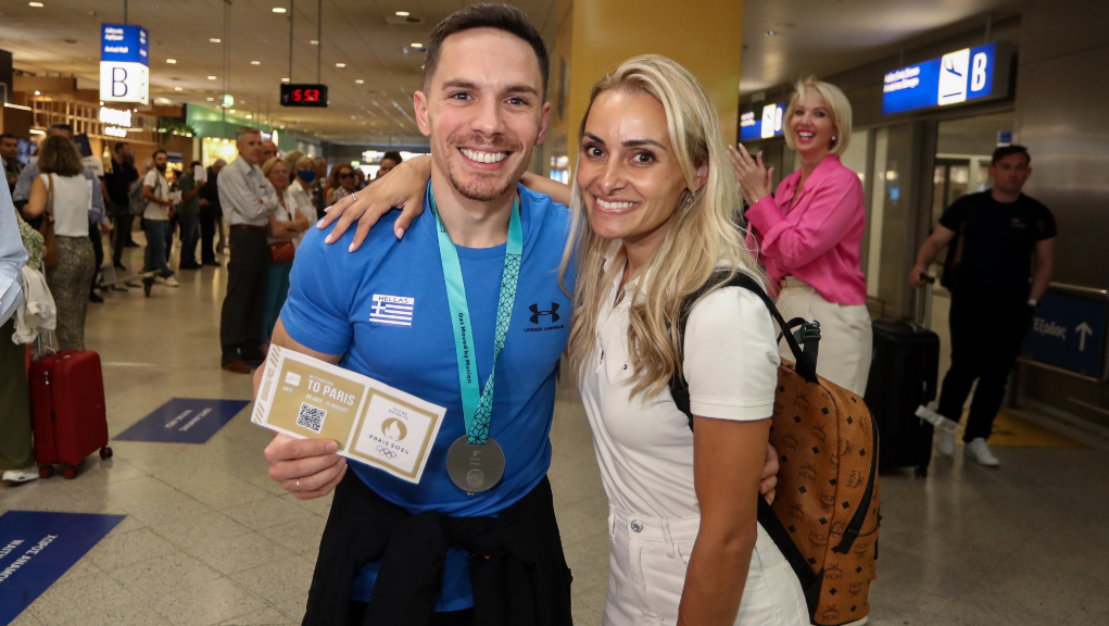 Ο Έλληνας πρωταθλητής την Κυριακή το μεσημέρι επέστρεψε στην Ελλάδα μαζί με την οικογένεια του και έδειχνε από τη μία το ασημένιο μετάλλιο που είχε στο λαιμό του και από την άλλη το εισιτήριο για τους Ολυμπιακούς Αγώνες στο Παρίσι.
