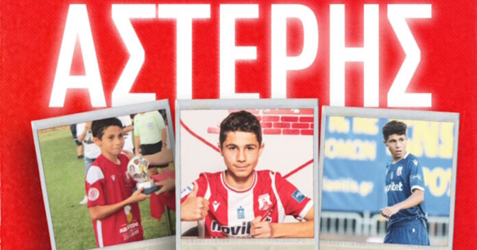 Ποδοσφαιρικό “προϊόν” των κόκκινων ακαδημιών και της εξαιρετικής δουλειάς που γίνεται εκεί αποδεδειγμένα πλέον τα τελευταία χρόνια, ο Αστέρης εντάχθηκε το 2020 στην ομάδα Elite που δημιούργησε ο προπονητής Σάκης Αναστασιάδης και η οποία το 2022 αναδείχθηκε πρωταθλήτρια Κ14 στην ΕΠΣΜ κερδίζοντας στον τελικό τον Ολυμπιακό με τον Αστέρη να σκοράρει και να αναδεικνύεται MVP.