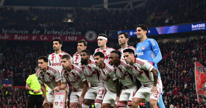 Οι παίκτες του Ολυμπιακού στο παιχνίδι με τη Λεβερκούζεν/ (KLODIAN LATO / EUROKINISSI)