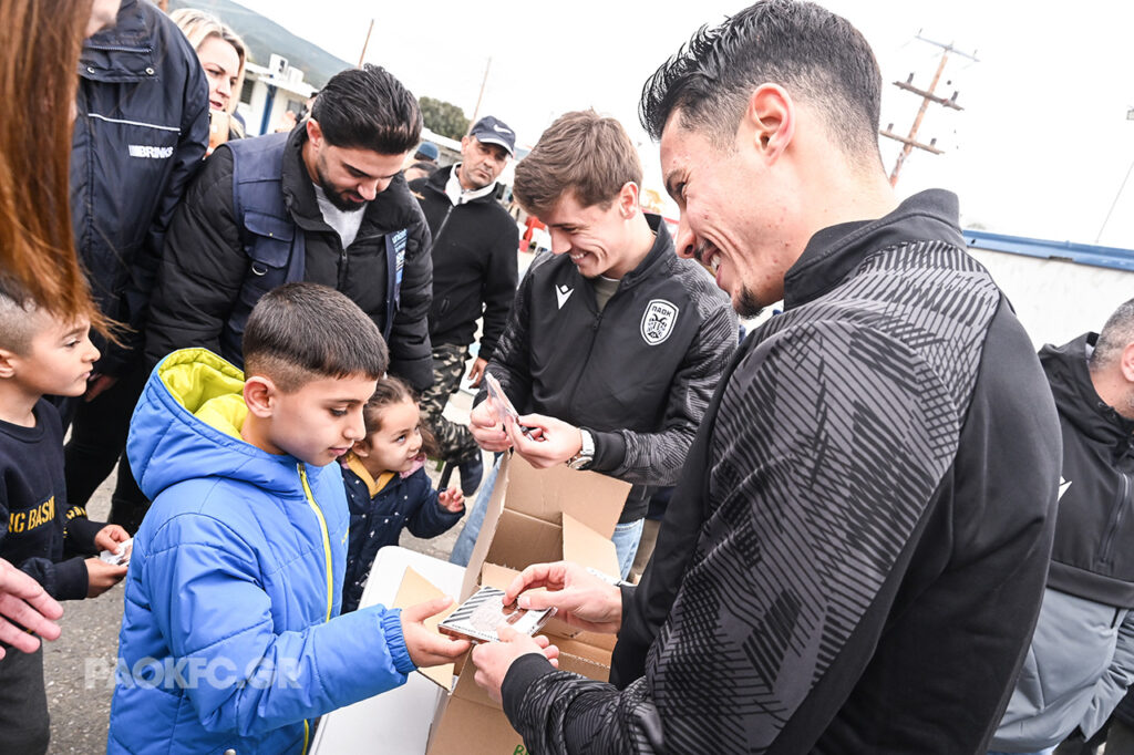Οι ποδοσφαιριστές του ΠΑΟΚ, Αντρέ Ρικάρντο και Φιλίπε Σοάρες, επισκέφτηκαν τη δομή και αφού μοίρασαν δώρα στα παιδιά, έπαιξαν μαζί τους ποδόσφαιρο. Στη δομή φιλοξενούνται άτομα, μονογονεϊκές οικογένειες και οικογένειες μέλη των οποίων αιτούνται διεθνή προστασία.