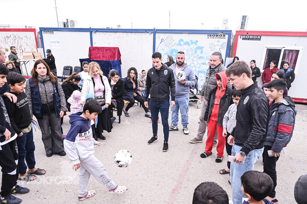Οι ποδοσφαιριστές του ΠΑΟΚ, Αντρέ Ρικάρντο και Φιλίπε Σοάρες, επισκέφτηκαν τη δομή και αφού μοίρασαν δώρα στα παιδιά, έπαιξαν μαζί τους ποδόσφαιρο. Στη δομή φιλοξενούνται άτομα, μονογονεϊκές οικογένειες και οικογένειες μέλη των οποίων αιτούνται διεθνή προστασία.