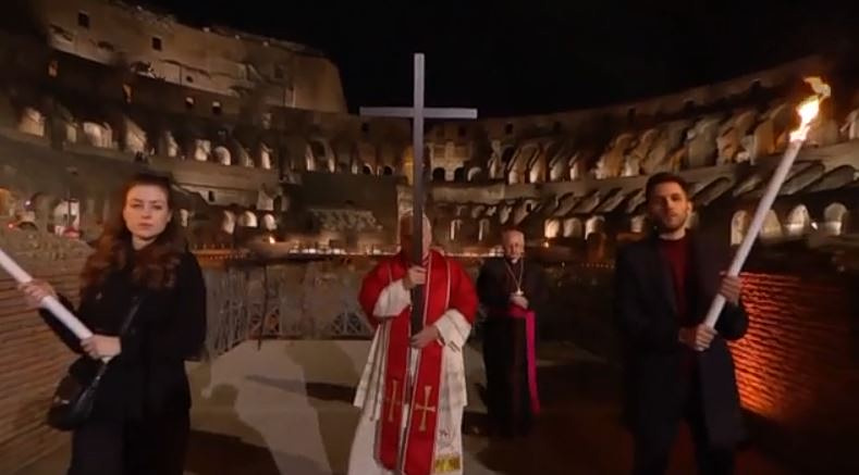 Η Μεγάλη Παρασκευή των Καθολικών αρχίζει και τελειώνει στον χώρο του Κολοσσαίου, στην παραδοσιακή Βία Κρούτσις ή την Οδό του Σταυρού.