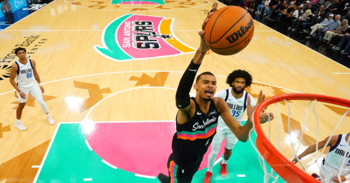 Ο Γουεμπανιάμα καρφώνει στο παιχνίδι με τους Μάβερικς/ Mandatory Credit: Scott Wachter-Imagn Images