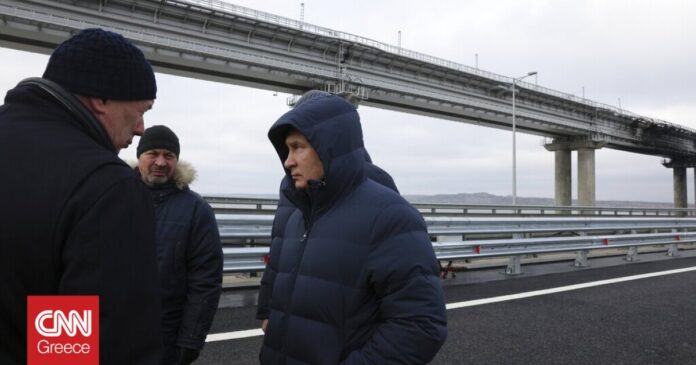 Ο Ρώσος πρόεδρος Βλαντίμιρ Πούτιν πραγματοποίησε επίσκεψη στη γέφυρα του Κερτς, έναν βασικό σύνδεσμο μεταξύ της προσαρτημένης χερσονήσου της Κριμαίας και της ηπειρωτικής Ρωσίας, η οποία καταστράφηκε μερικώς από έκρηξη τον Οκτώβριο, σύμφωνα με ρωσικά κρατικά μέσα ενημέρωσης.