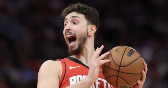 Ο Σενγκούν με τη φανέλα των Ρόκετς/ Mandatory Credit: Thomas Shea-Imagn Images