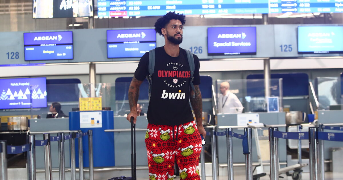 Με ένα άκρως… γιορτινό παντελόνι εμφανίστηκε ο Τάιλερ Ντόρσεϊ στο αεροδρόμιο, ενόψει του ταξιδιού του Ολυμπιακού στην Μπολόνια, για το ματς με την Βίρτους.