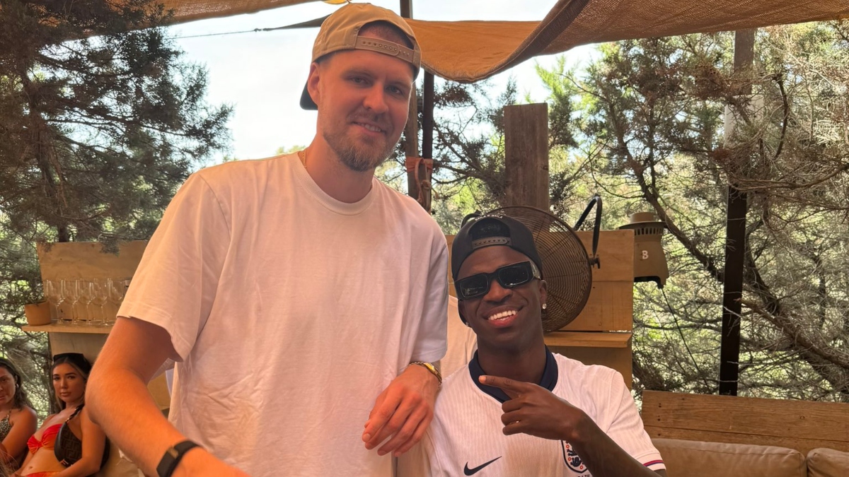 Ο Βινίσιους Τζούνιορ απολαμβάνει κάποιες στιγμές ξεκούρασης μετά τη συμμετοχή του στο Copa America με τη “Σελεσάο”. Ο Βραζιλιάνος ανέβασε αρκετές φωτογραφίες από τις διακοπές του στα μέσα κοινωνικής δικτύωσης, επιδεικνύοντας μια ιδιαίτερη φανέλα της Αγγλίας στη συλλογή του και κάνοντας παρέα με τον αστέρα των πρωταθλητών του ΝΒΑ Μπόστον Σέλτικς, Kρίσταπς Πορζίνγκις.