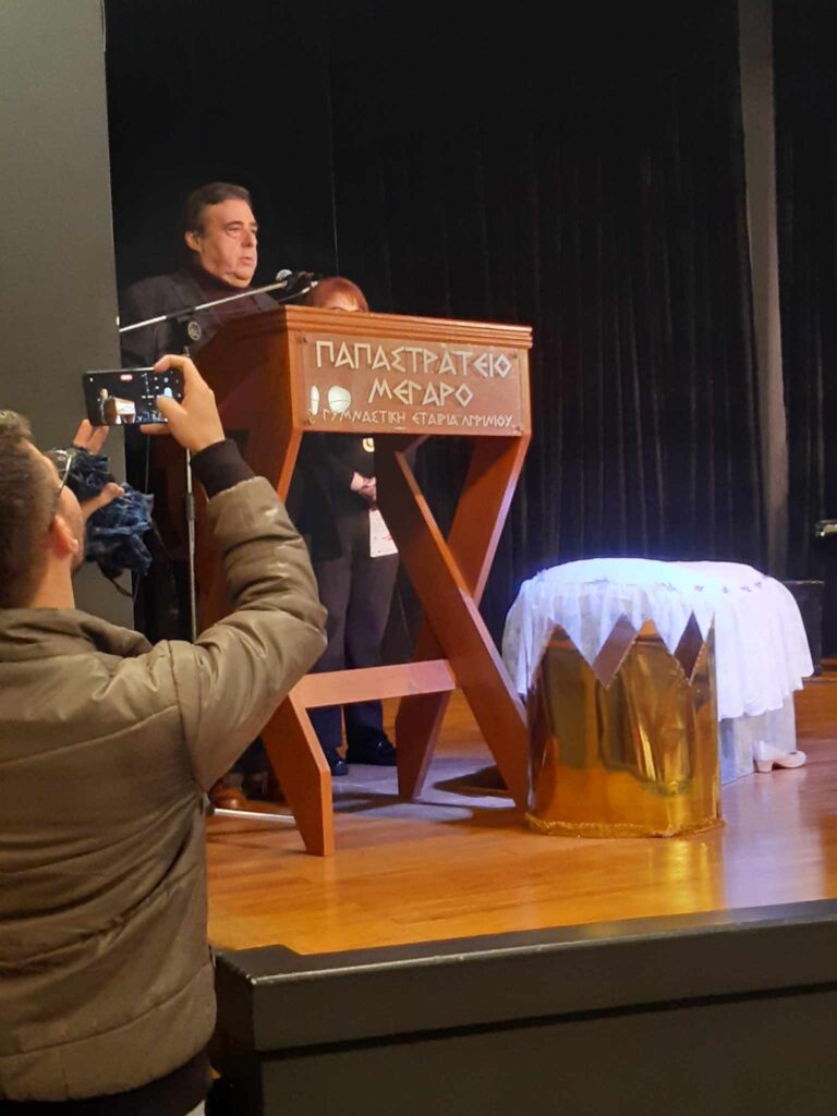 Τέλος, την παράσταση παρακολούθησαν εκπρόσωποι φορέων του τόπου μας, καθώς και πλήθος συμπολιτών μας, στο κατάμεστο Παπαστράτειο Μέγαρο.