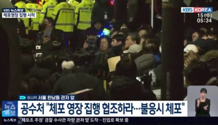 Μέλη της προσωπικής του φρουράς και περίπου 6.500 υποστηρικτές του Γιουν είχαν συγκεντρωθεί από νωρίς στους -8 βαθμούς Κελσίου, σχηματίζοντας ανθρώπινο κλοιό με σκοπό να αποτρέψουν την σύλληψη.