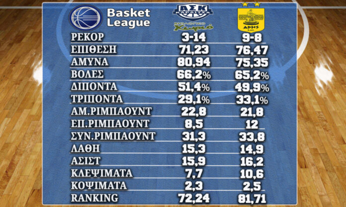 Ο Άρης έχει σημειώσει τρεις νίκες στα οχτώ εκτός έδρας παιχνίδια που έδωσε ως τώρα στη φετινή Basket League. Το παράδοξο, ίσως, είναι ότι εκτός έδρας είναι πιο παραγωγικός επιθετικά αφού σημειώνει 78,25 πόντους έναντι των 74,88 των εκτός έδρας αγώνων του. Η ουσιαστική διαφορά όμως είναι στην άμυνα καθώς ως φιλοξενούμενος δέχεται σχεδόν 13 περισσότερους πόντους (82 έναντι των 69,44 που δέχεται ως γηπεδούχος).