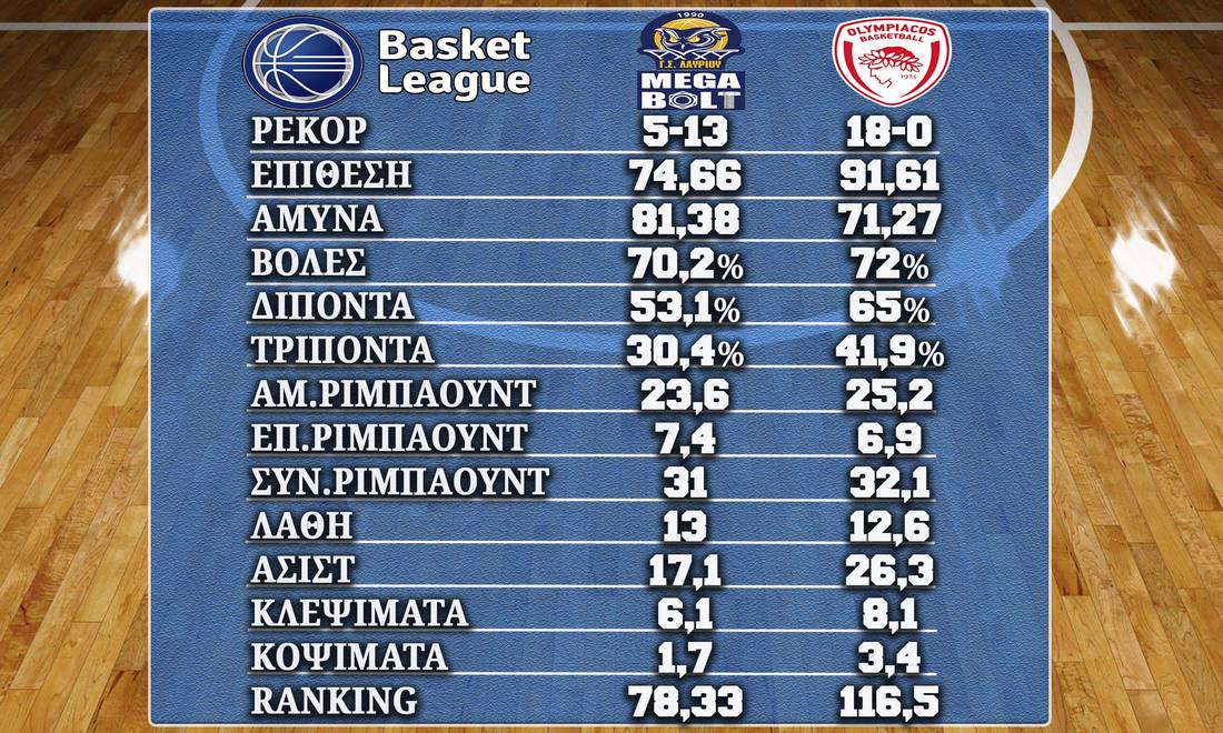 + Το φετινό Λαύριο Megabolt έχει περισσότερες ασίστ (17,1 έναντι 16,2) και λιγότερα λάθη (13 έναντι 13,7) σε σχέση με την περσινή σεζόν.