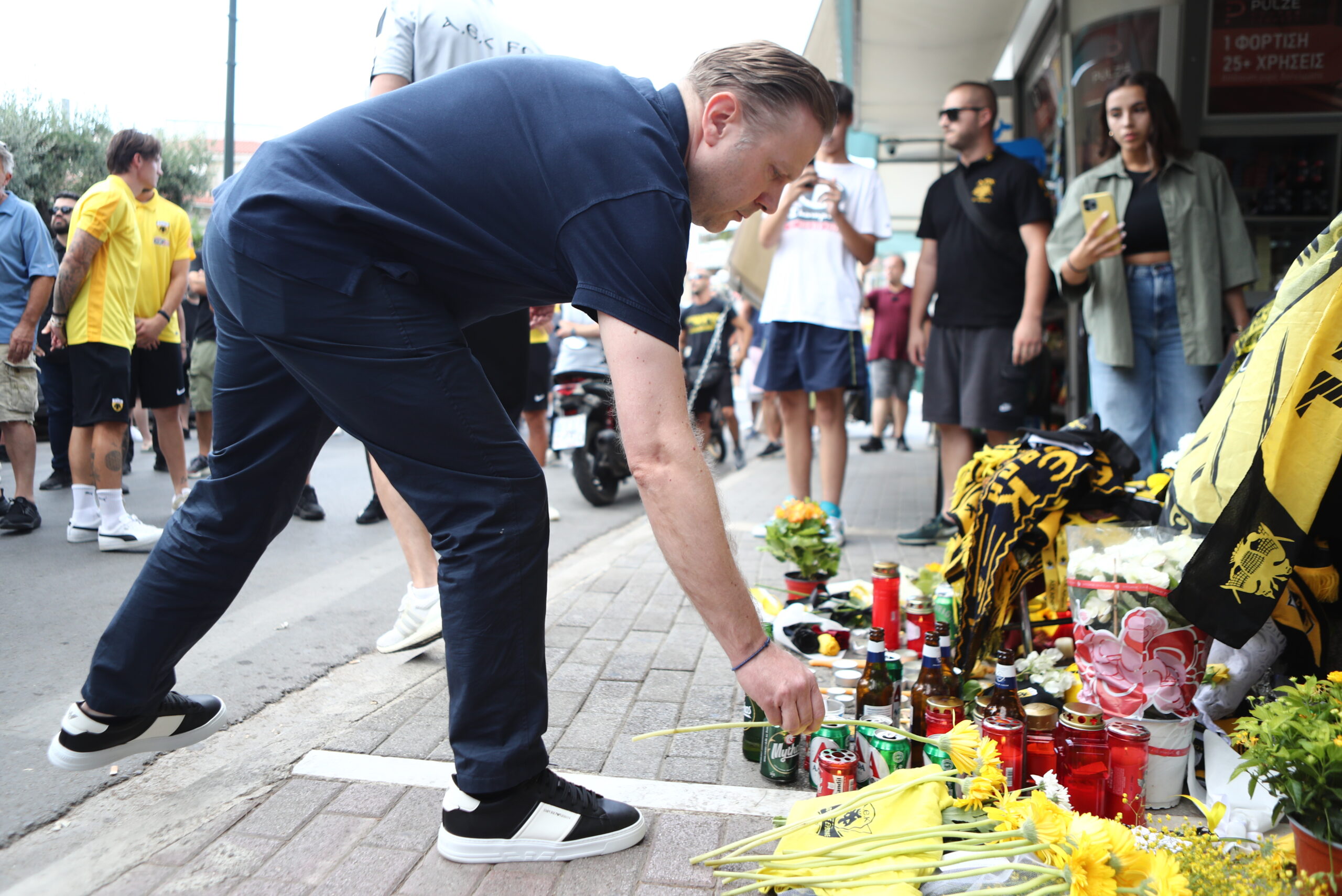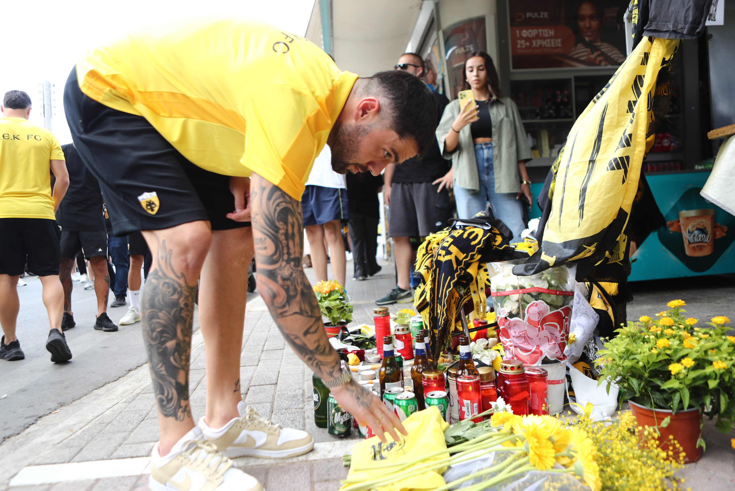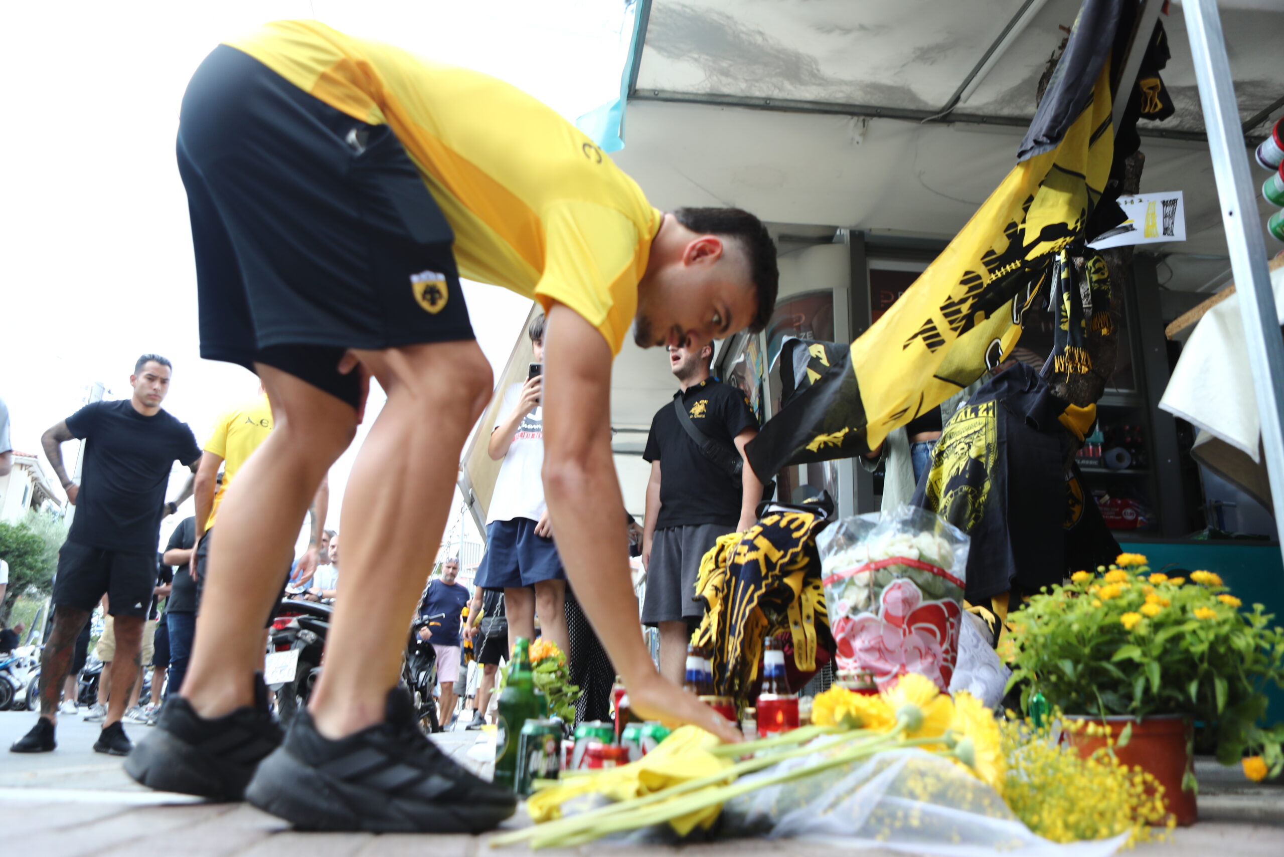 Οι αρχηγοί των “κιτρινόμαυρων” Σέρχιο Αραούχο, Κώστας Γαλανόπουλος, Νταμιάν Σιμάνσκι, Στίβεν Τσούμπερ και Γιώργος Αθανασιάδης, συνοδεία των Δημήτρη Ναλιτζή, Γιώργου Κοσμά και Ανθή Παπακώστα άφησαν λουλούδια στο σημείο που άφησε την τελευταία του πνοή ο 29χρονος Μιχάλης.