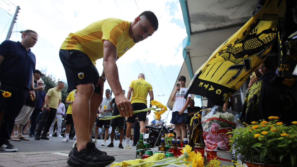 Οι αρχηγοί των “κιτρινόμαυρων” Σέρχιο Αραούχο, Κώστας Γαλανόπουλος, Νταμιάν Σιμάνσκι, Στίβεν Τσούμπερ και Γιώργος Αθανασιάδης, συνοδεία των Δημήτρη Ναλιτζή, Γιώργου Κοσμά και Ανθή Παπακώστα άφησαν λουλούδια στο σημείο που άφησε την τελευταία του πνοή ο 29χρονος Μιχάλης.